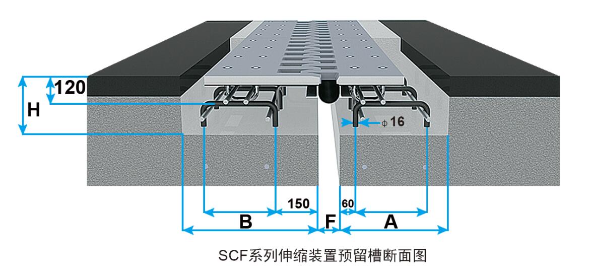 SCF系列梳齒板伸縮裝置是我公司近年來針對薄壁梁建筑高度低,為伸縮裝置安裝提供的預(yù)留槽深度較小的情況設(shè)計(jì)開發(fā)的新產(chǎn)品。該產(chǎn)品總結(jié)了國內(nèi)外各種梳齒板伸縮裝置的特點(diǎn),適合于位移置小于480mm的各類鋼結(jié)構(gòu)橋和混凝土橋梁。