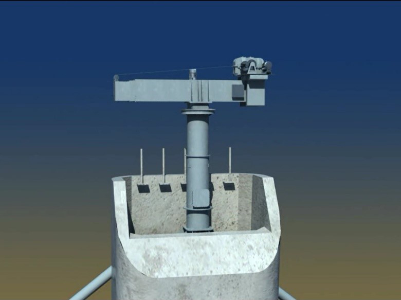 橋塔塔外檢修車隱蔽安裝在主塔塔頂,通過機身升降、機身旋轉(zhuǎn)、吊臂伸縮、臂端頭吊船上升下降,用于主塔外表面缺陷檢測與維護。